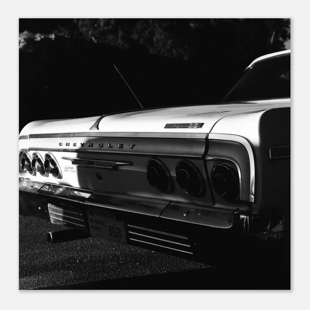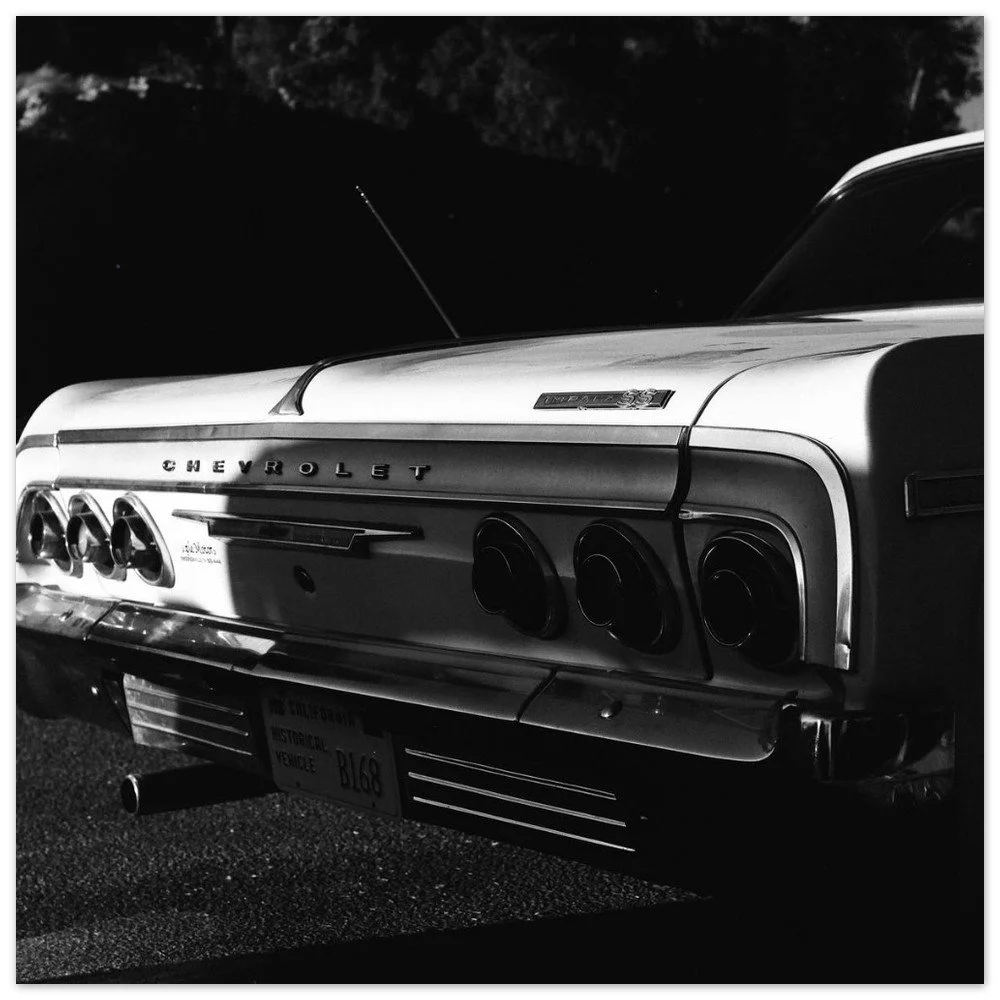 A pristine Impala SS with historic plates, radiating California cool under magic hour light. Available as a museum-grade art print for collectors and enthusiasts alike.