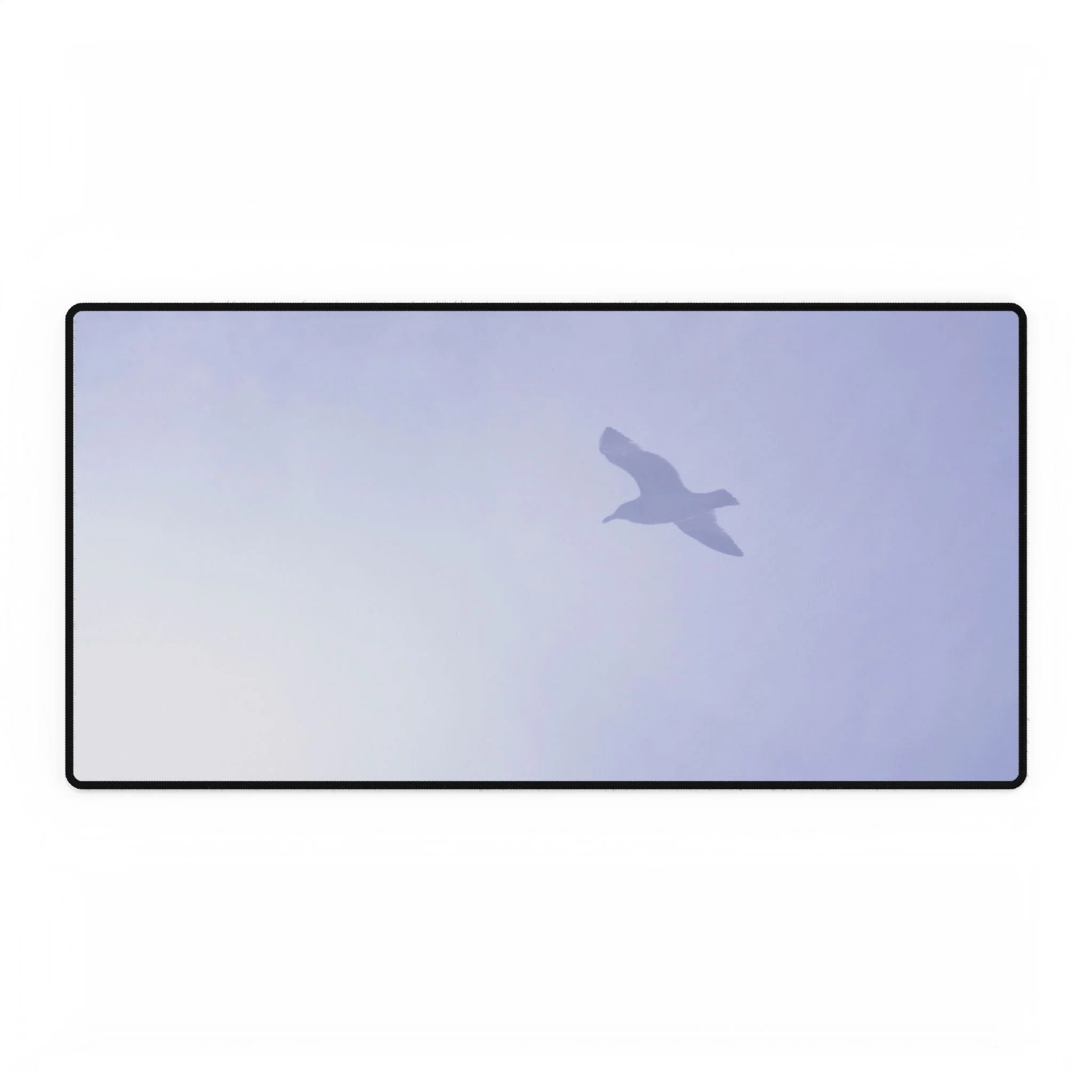 A classic slice of Californiacation: a lone gull coasts through beach haze. Printed on a smooth desk mat, adding visual rhythm to your workspace.