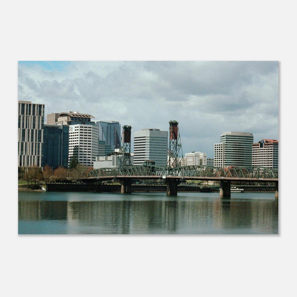 A rare clear-sky moment in Portland, OR, centered on one of its most iconic bridges. Available as a fine art poster for thoughtful display.